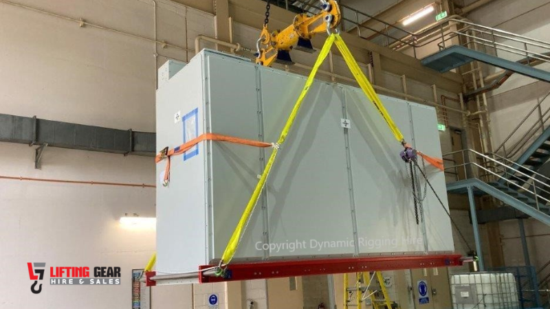 The shorter bars have a maximum load capacity of 3.5t when used with a 60° included sling angle, the longer bars have a 2.5t rating. We can supply a spreader beam to accommodate any with so the lifting slings do not come into contact with the cabinet, lifting slings in synthetic, wire or chain types are also available.
